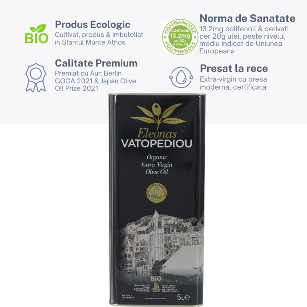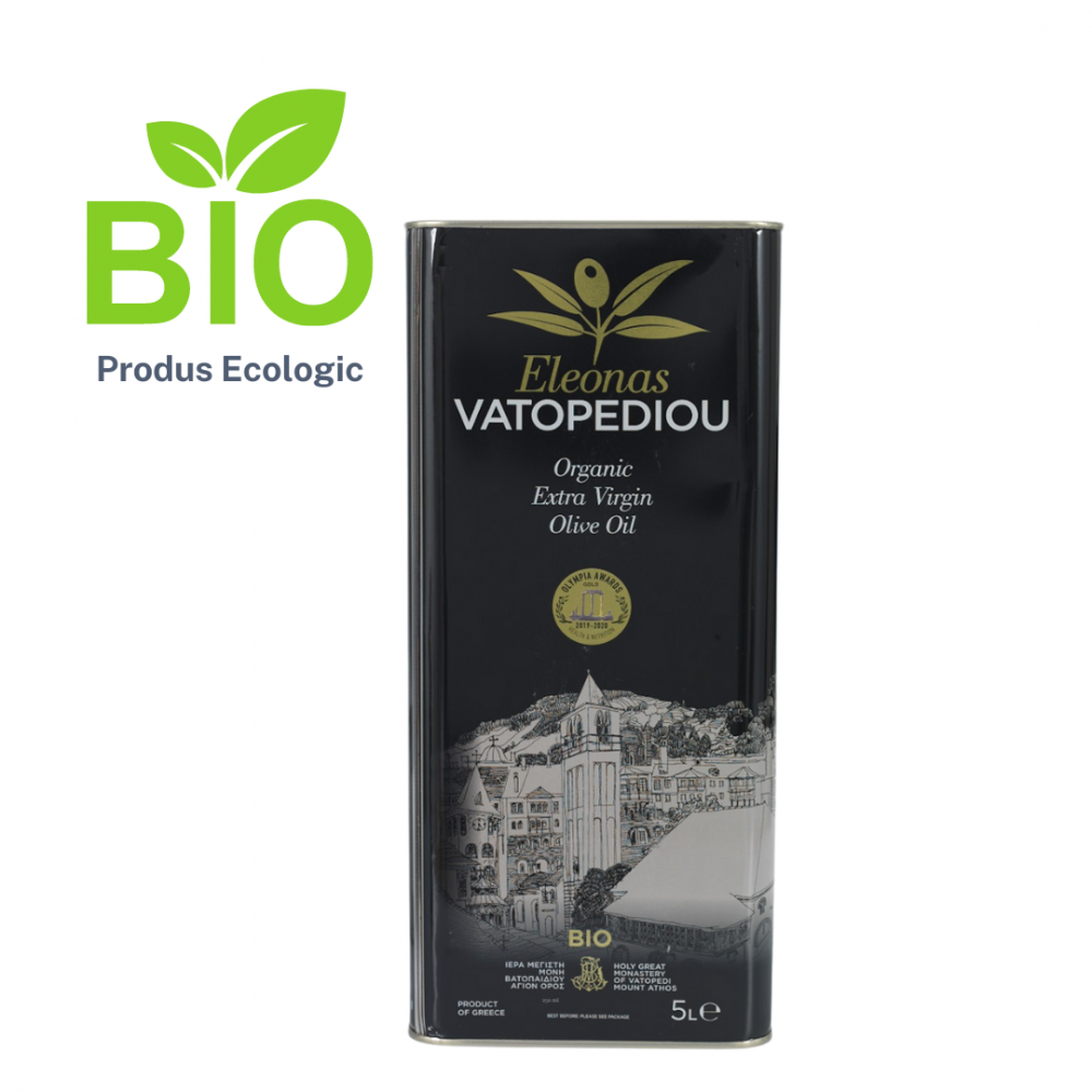 Ulei de masline extravirgin BIO (5 L) - ulei organic provenit din cultura bio a Sfintei Mari Manastiri Vatopedi, de la Sfantul Munte Athos.