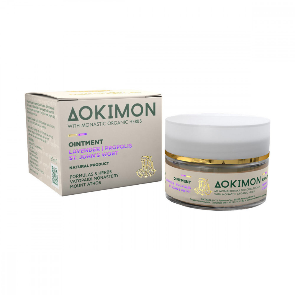 Unguentul cu lavanda, propolis si sunatoare, Dokimon, de la Manastirea Vatopedi, Sfantul Munte Athos este recomandat pentru afectiuni ale pielii.